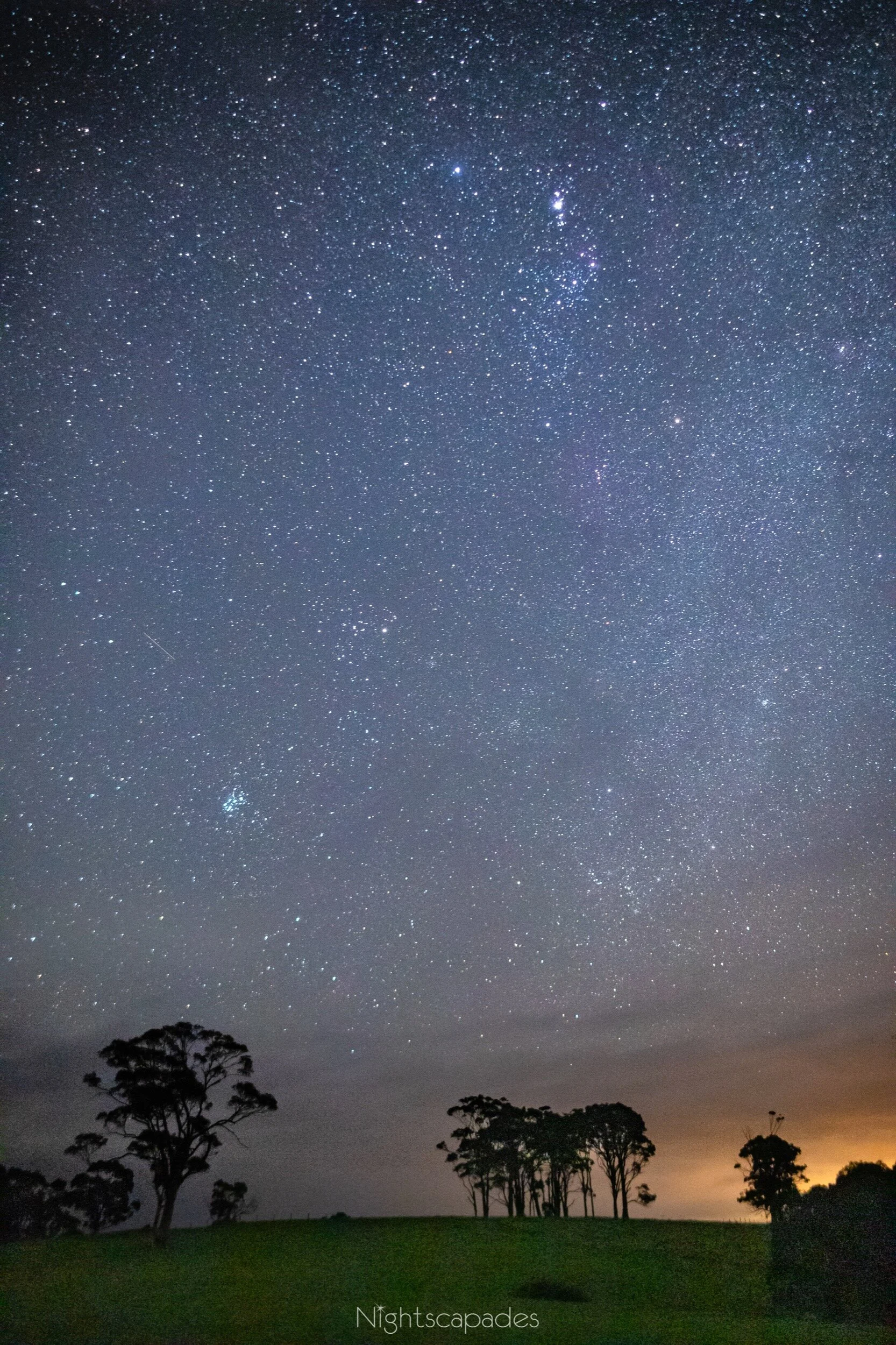I remember the night that I shot this photo of Orion, Taurus and the Pleiades star cluster in the west near Tilba, Australia. It was, in fact, the evening of the first day of 2019. Despite being in the middle of our southern summer, it’s not unusual to have weeks on end of cloudy nights in January there on the coast. On this New Year’s night, I had driven for nearly two hours to find a location with a clear view of the stars, eventually stopping on this hill overlooking the eponymous Tilba Lake. The clouds managed to stay away only long enough for me to shoot nine photos, a far cry from the hundreds that I’d typically click off in a session.
